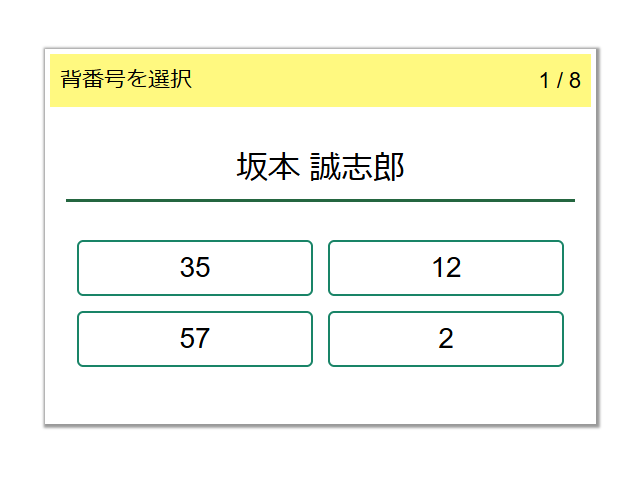 選手の背番号を答えるクイズに挑戦しましょう!