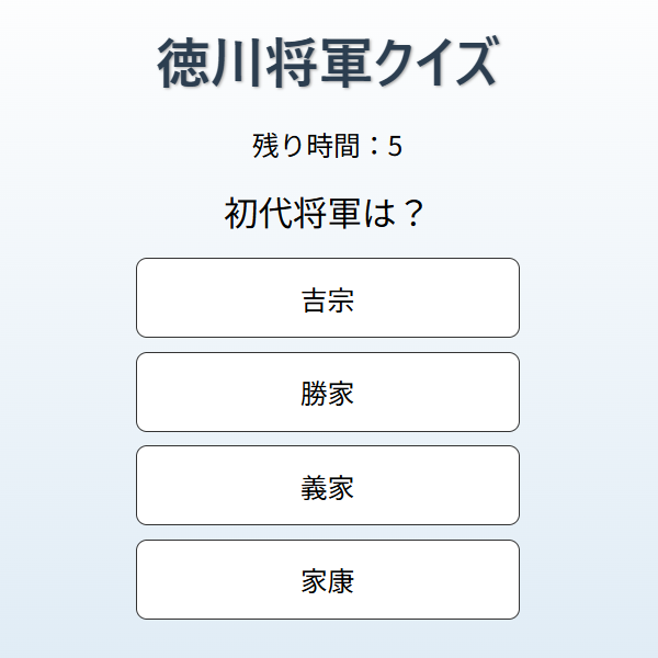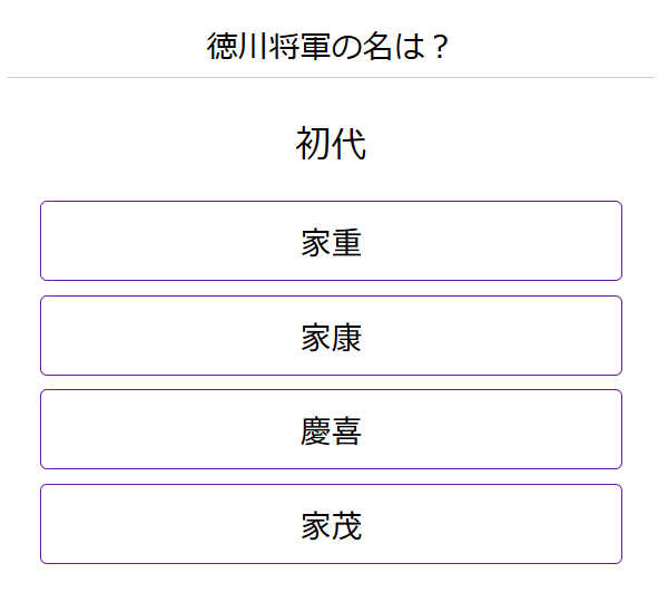 - 初代の将軍の名前を、4つの選択肢から選びます。