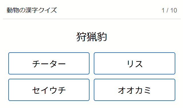 狩猟豹を読める人は少なそうですが、4択なら正解できる可能性は高そうです。