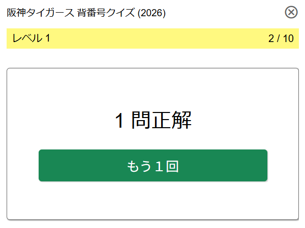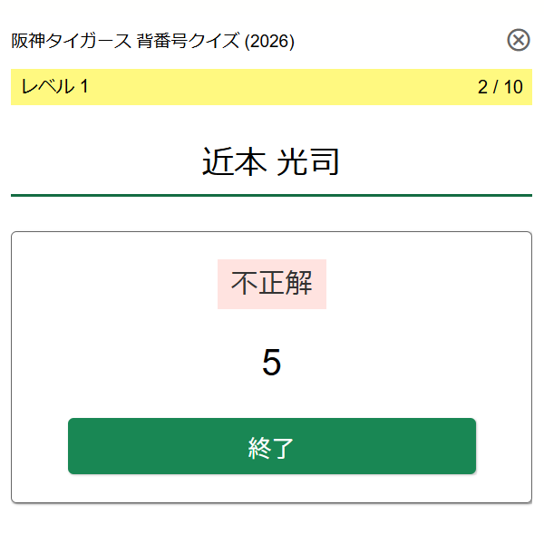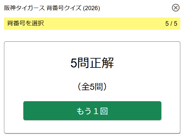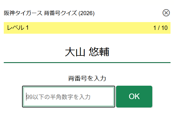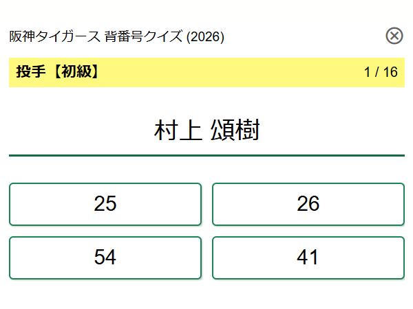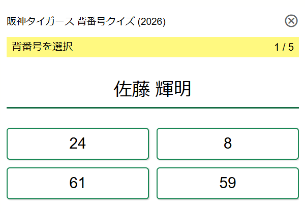 表示された阪神タイガース選手の背番号を答えるだけのクイズです。